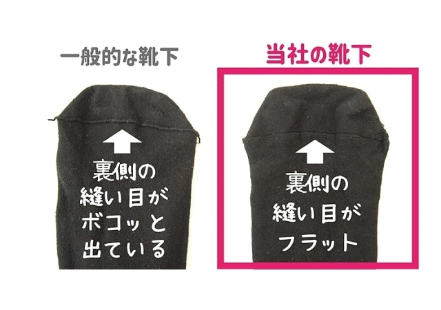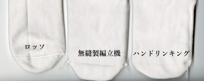 通常の靴下は、筒状に編み立てた後、最後に「つま先」を縫い合わせて閉じます。この際、一般的に使われるのが「ロッソ」という縫製方法です。