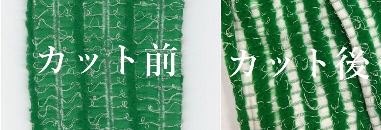 そのため製造時には、糸が伝う問題を前提としながらも、せめてループに指がひっかからないよう可能な範囲でループを切断する設定を行います。