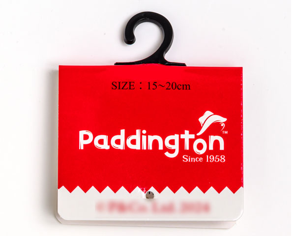 弊社で主に扱っているのが右のような紙タグです。厚みは、店頭に出ているキャラクター靴下についているヘッダータグと同程度です。