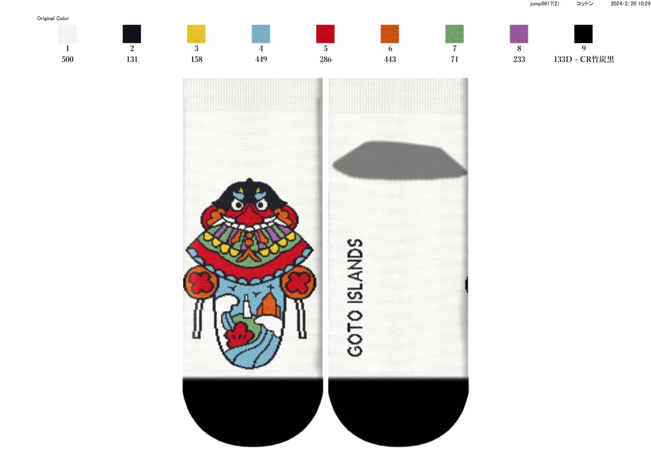 長崎県五島のお客様より2022年10月~五島列島を舞台にした朝ドラの放映に合わせた観光物産靴下製作のご依頼を頂きました。