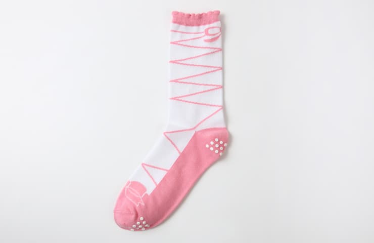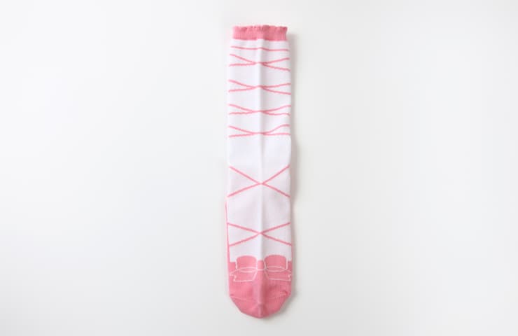 バレエ用トゥーシューズの上から履くオリジナル靴下を製作しました。バレエグッズを手掛けるお客様よりイメージをお伺いし、弊社でデザインを起こしました。