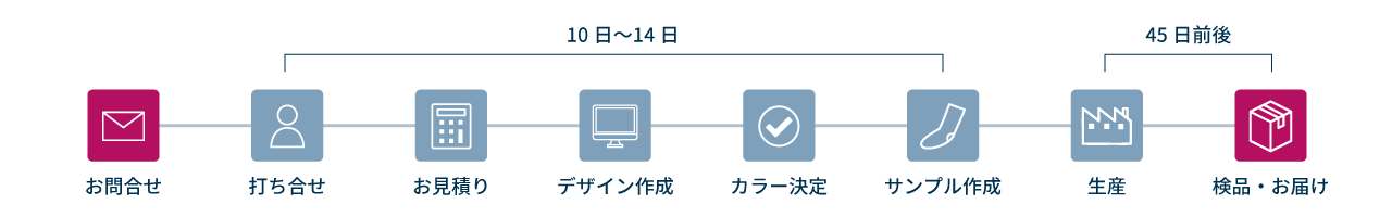 生産のご依頼をいただいてから、約45日で完成した靴下をお手元にお届けします。