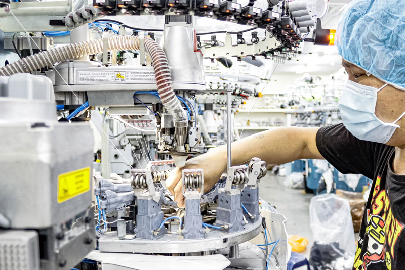 主に生産を行う台湾工場では「多色機」と呼ばれる豊富な色数の再現が可能な編機を146台保有。