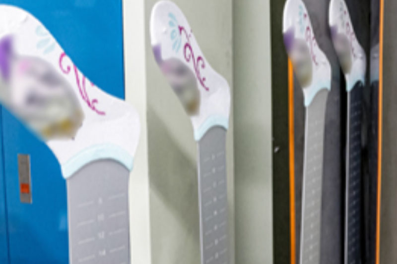 靴下のデザインがセット時ののばし具合の影響を最小限にするため板にメモリがついています。