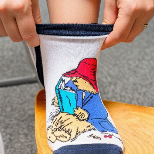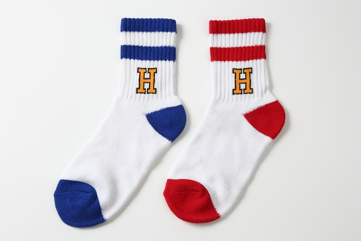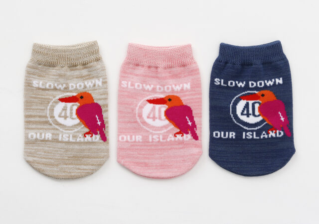 キッズサイズの靴下。多様な色柄が表現できます。滑り止め加工にも対応可能。