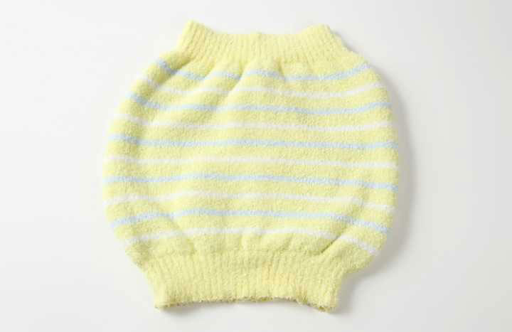 フェザーヤーンやアクリル素材で暖かく。短パン型も対応可。キャラクターも表現できます。