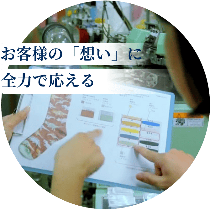 完成した靴下のサンプルは、実際にお客さんに履いてもらいます。また、必ず自分でも履いて、履き心地を確認しています。実際に靴下を履く方に喜んでいただけるように、外観を見ただけでは分からない部分までこだわっています。