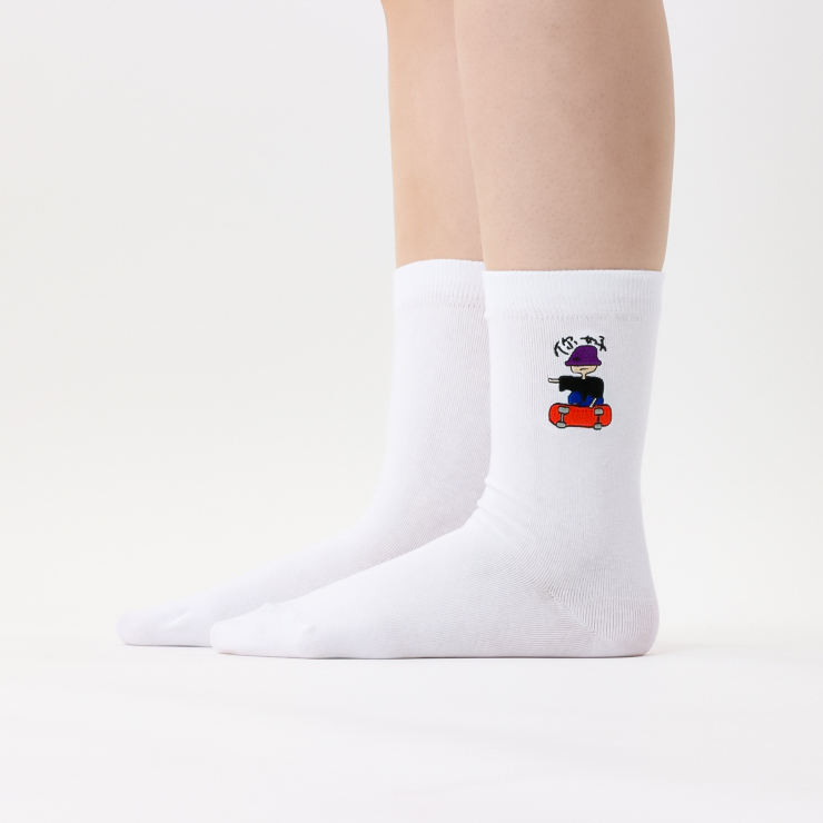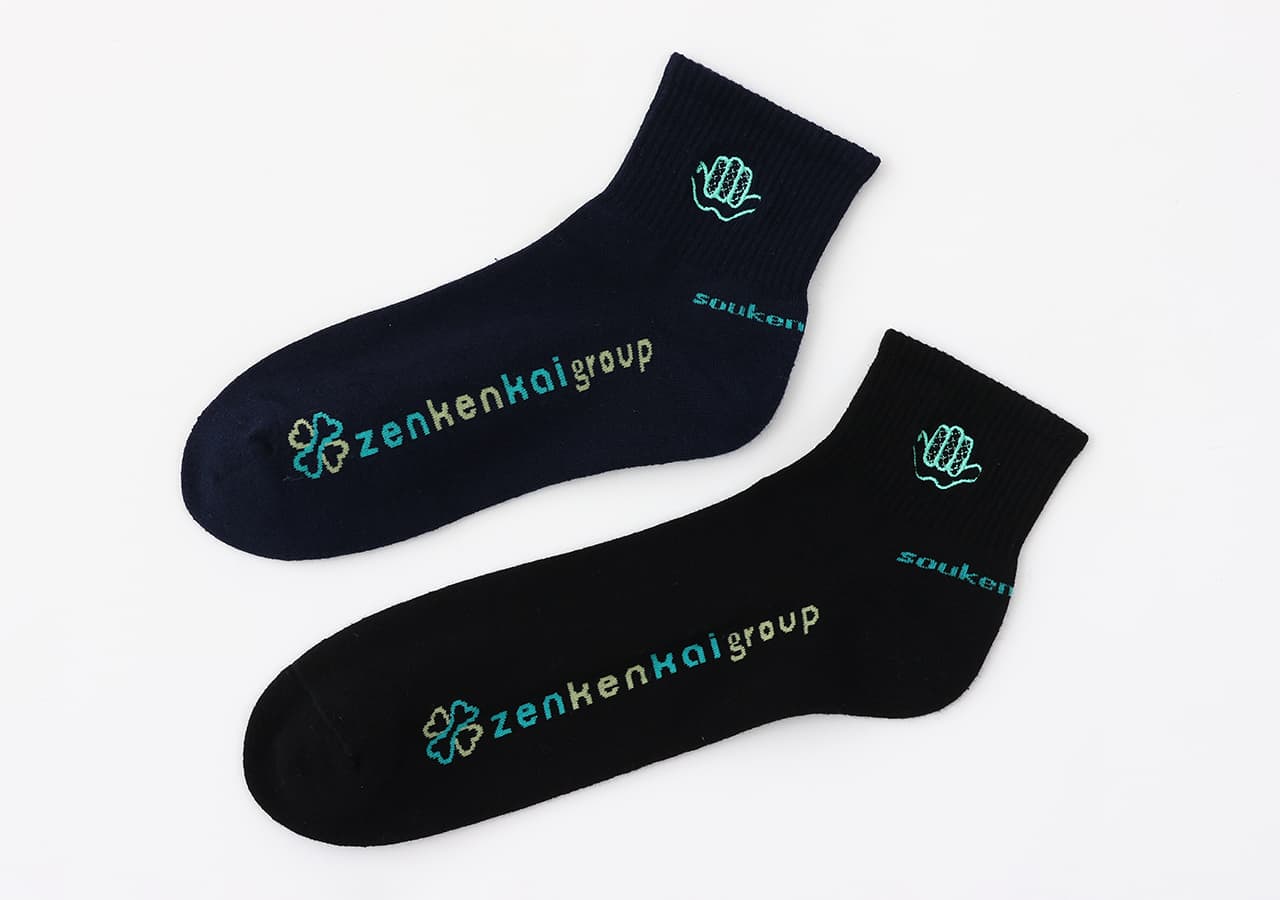 また、定番以外のカラーの靴下やオリジナル靴下(総柄)にワンポイント刺繍を施すことも可能。さらにオリジナリティある靴下を求める方にも納得いただける商品です。
